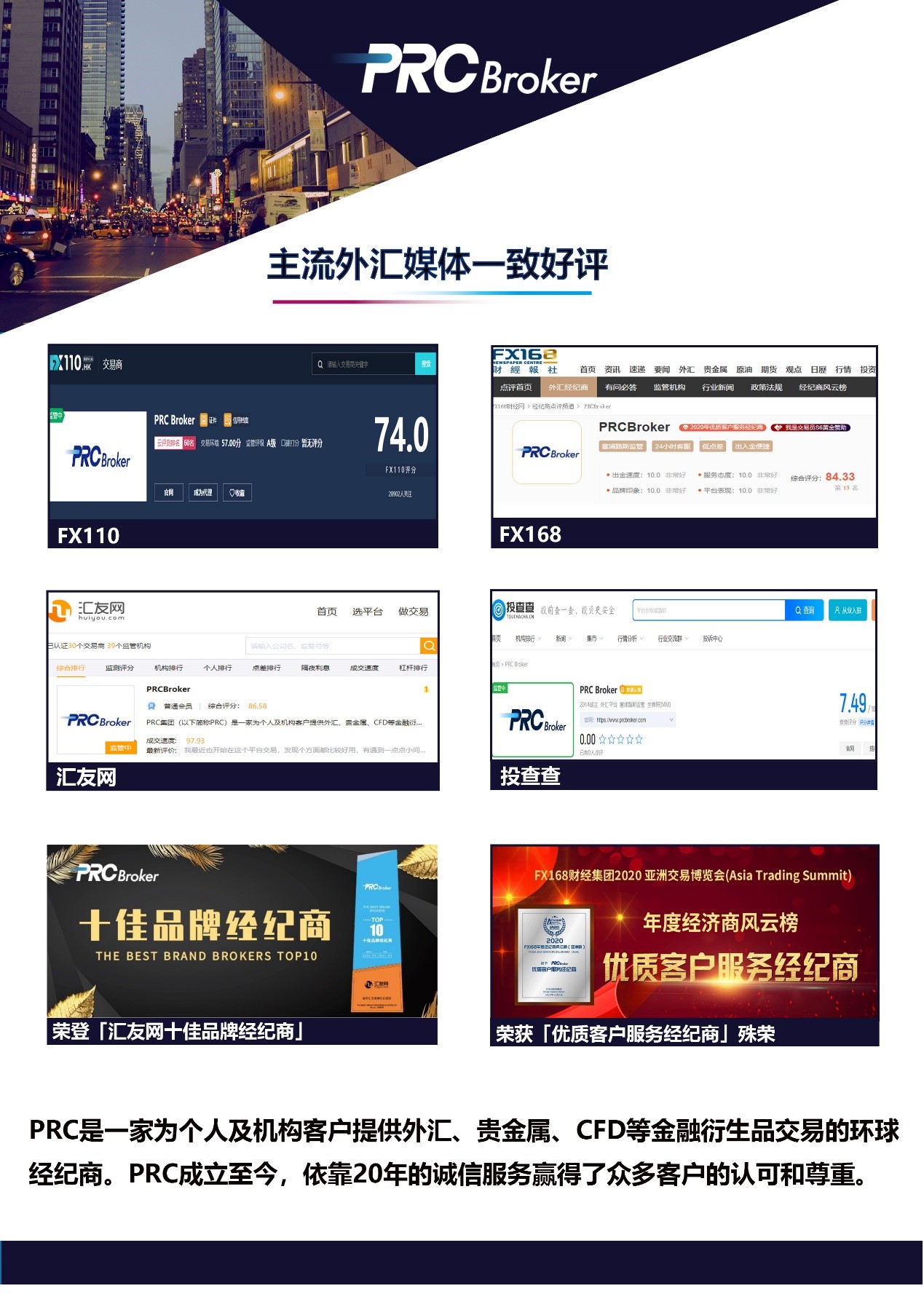 PRCBroker作为一家深耕中国市场多年的老牌经纪商,凭借着一流的服务质量、专业表现以及非凡口碑,被授予【最佳客户服务经纪商】荣誉!感谢全球投资者一直以来的支持和信赖!