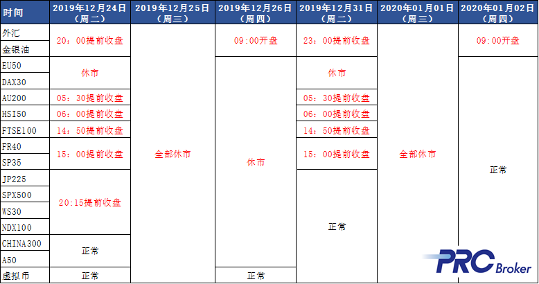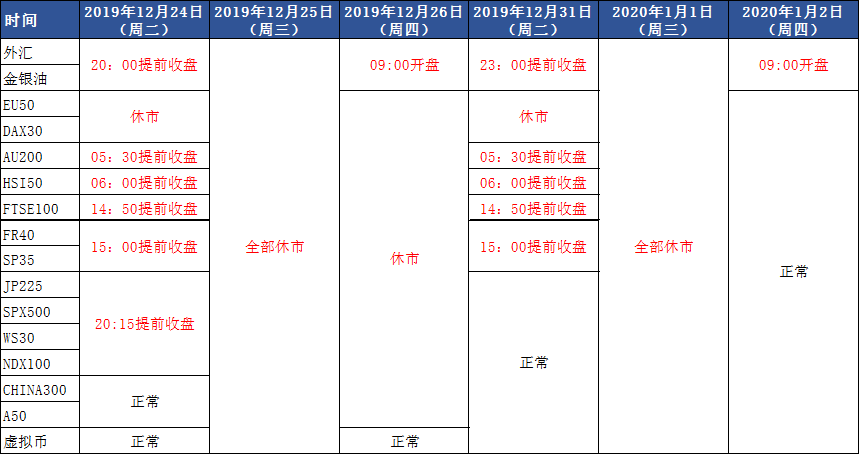 在圣诞节(2019/12/25)和元旦(2020/01/01)当天,在线客服以及出入金业务暂停办理,其他交易日正常。