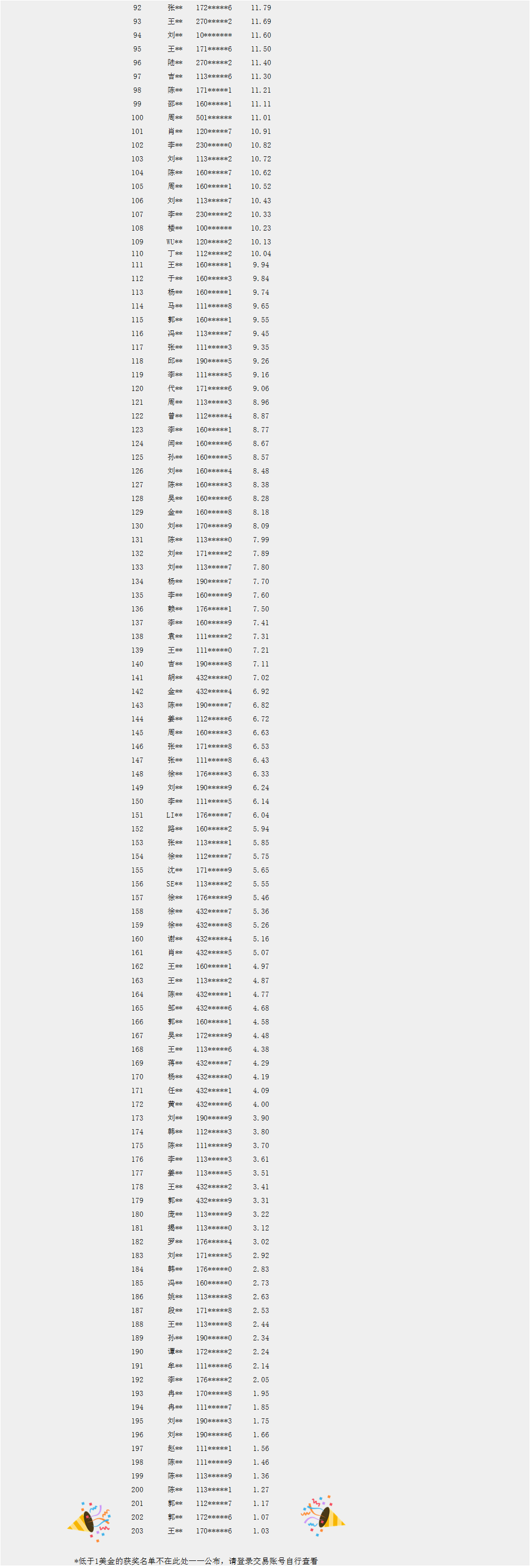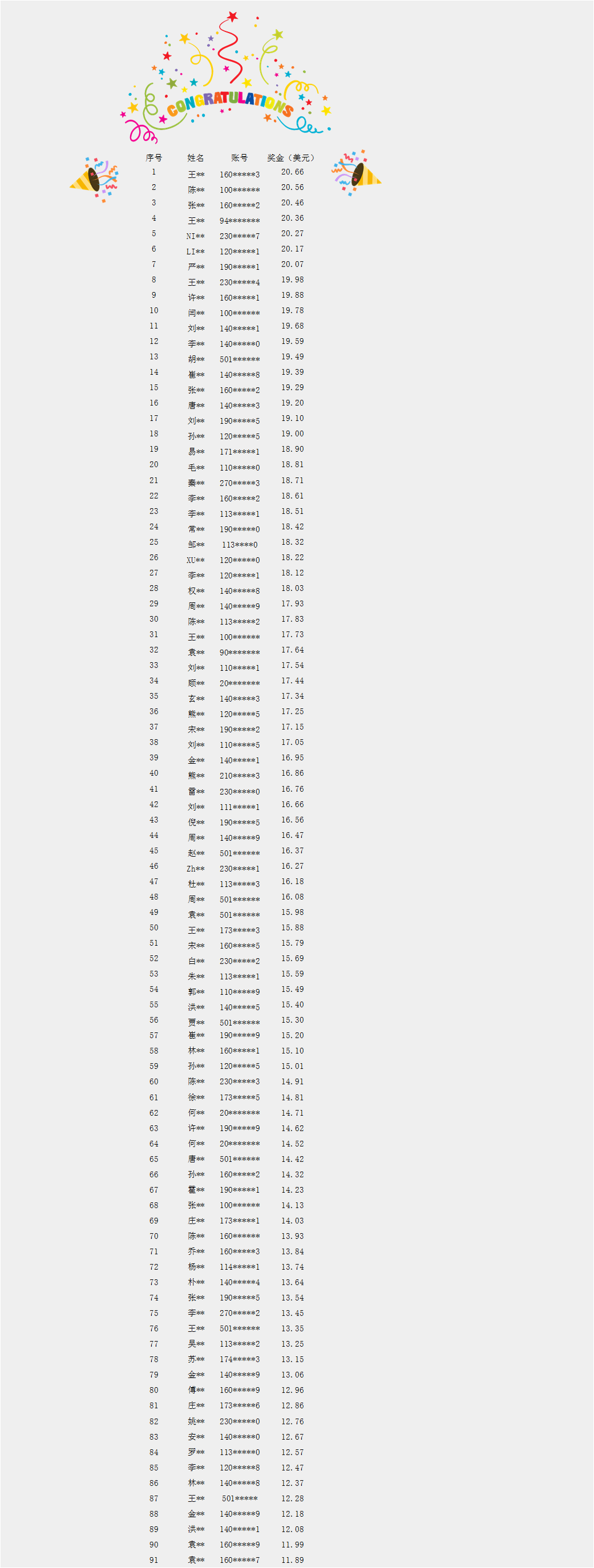 1.本期竞猜红包总额一万元人民币,将按照客户提交的预测数值与公布数值的接近程度决定获奖等级,瓜分红包奖金,参与者人人有份