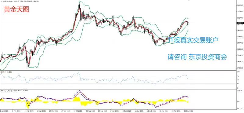 黄金上日开盘1870.65,最高1896.11,最低1855.58,收盘1891.45.