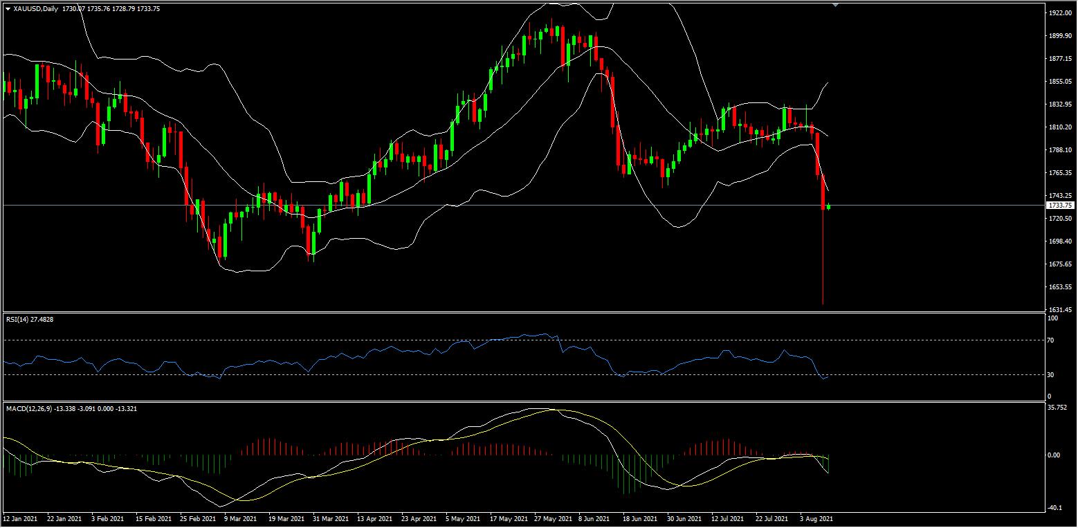 从技术分析的角度,黄金价格上日继续围绕天图级别布林带下轨处行,天图级别布林带上下轨大幅开口,中轨向下运行。