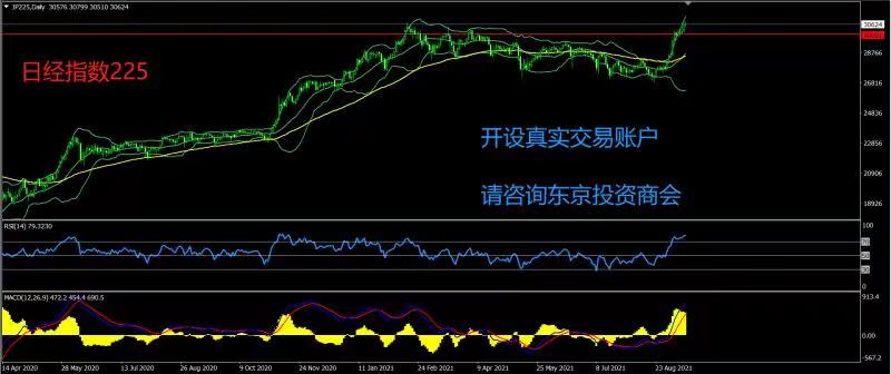 日经225上日开盘30136,最高30742,最低30131,收盘30614。