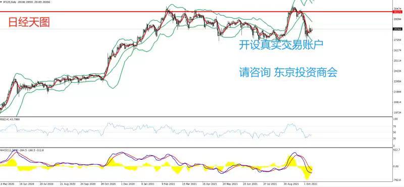 日经225上日开盘28108,最高28367,最低27980,收盘28190.