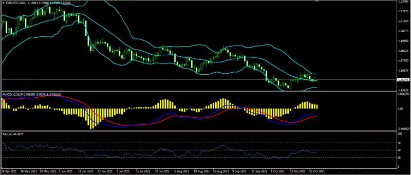 从技术分析的角度,欧美汇价上日价格围绕布林带中轨小幅度盘整,未能有效突破布林带中轨,汇价持续在布林带中轨与上轨之间的运行,天图级别布林带横盘收口。