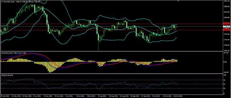 从技术分析的角度,黄金价格上日受支撑1783上涨,持续在区间1783—1812徘徊,未能触碰布领带中轨。汇价持续在布林带中轨与上轨之间运行,天图级别布林带向上收口,布林带中轨向上偏折。