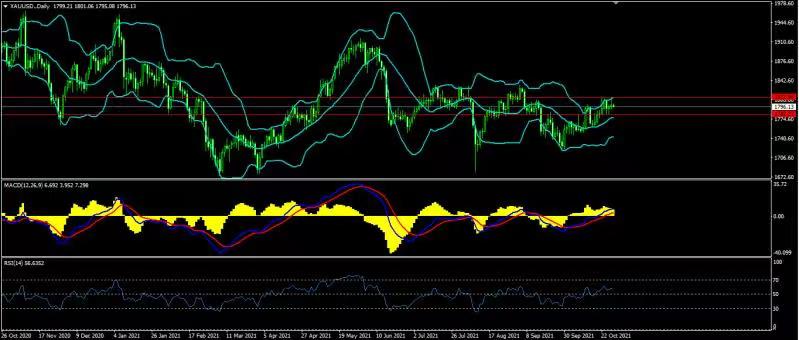 黄金上日开盘1796.7,最高1810.3,最低1792.2,收盘1798.7
