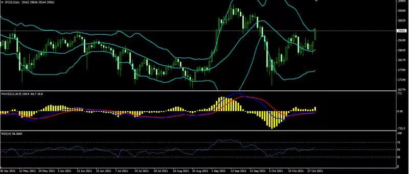 日经225上日开盘28859,最高29046,最低28465,收盘29030