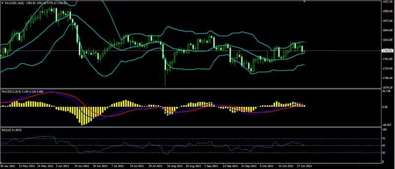 从技术分析的角度,黄金价格上日突破区间1783—1812后受布林带中轨迅速回调。汇价持续在布林带中轨与上轨之间运行,天图级别布林带横盘收口。