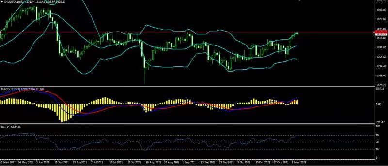 黄金上日开盘1827.4,最高1832.6,最低1819.1,收盘1831.6