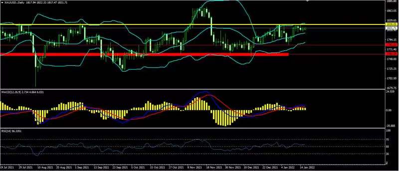 黄金上日开盘1816.7,最高1823.1,最低1813.0收盘1819.1