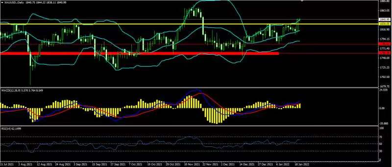 黄金上日开盘1812.6,最高1843.4,最低1810.2收盘1840.7