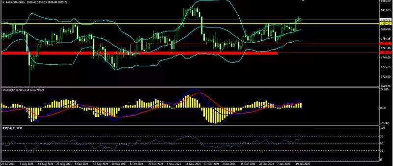 黄金上日开盘1840.7,最高1847.9,最低1836.2收盘1839.5