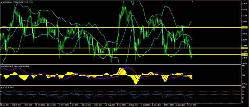 日经225上日开盘27404,最高27700,最低27122,收盘27174