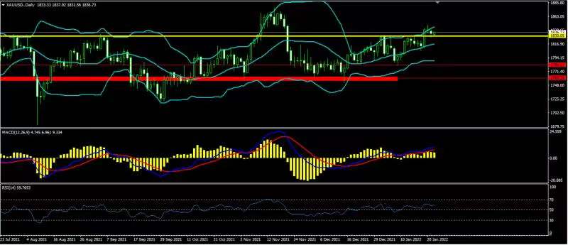 黄金上日开盘1839.5,最高1843.2,最低1828.5收盘1834.3