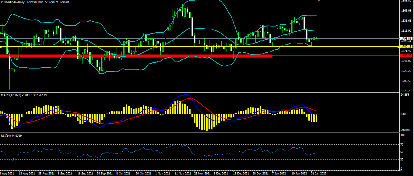 上日黄金价格在1781一线获得支撑触底继续向上反弹。今日建议观察区间1781至1815。日线级别布林带三轨开始向下偏折。