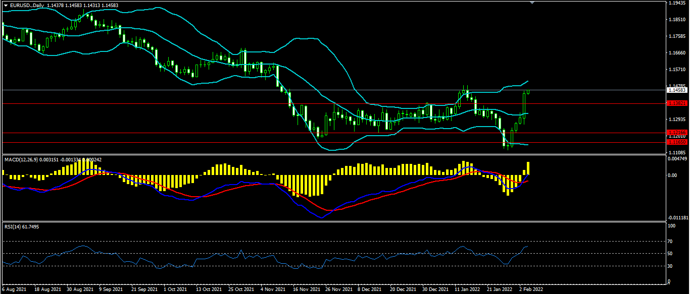 欧美上日开盘1.1300最高1.1450最低1.1266收盘1.1437