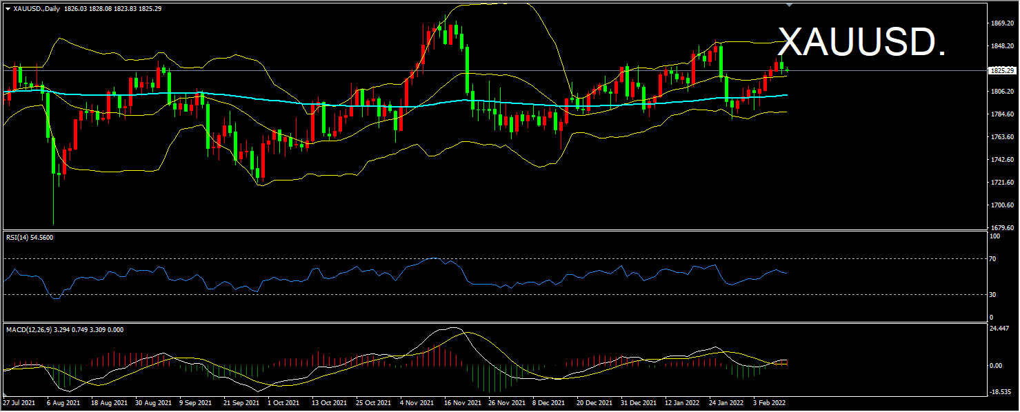 黄金上日开盘1832.5,最高1842.0,最低1821.6收盘1826.8
