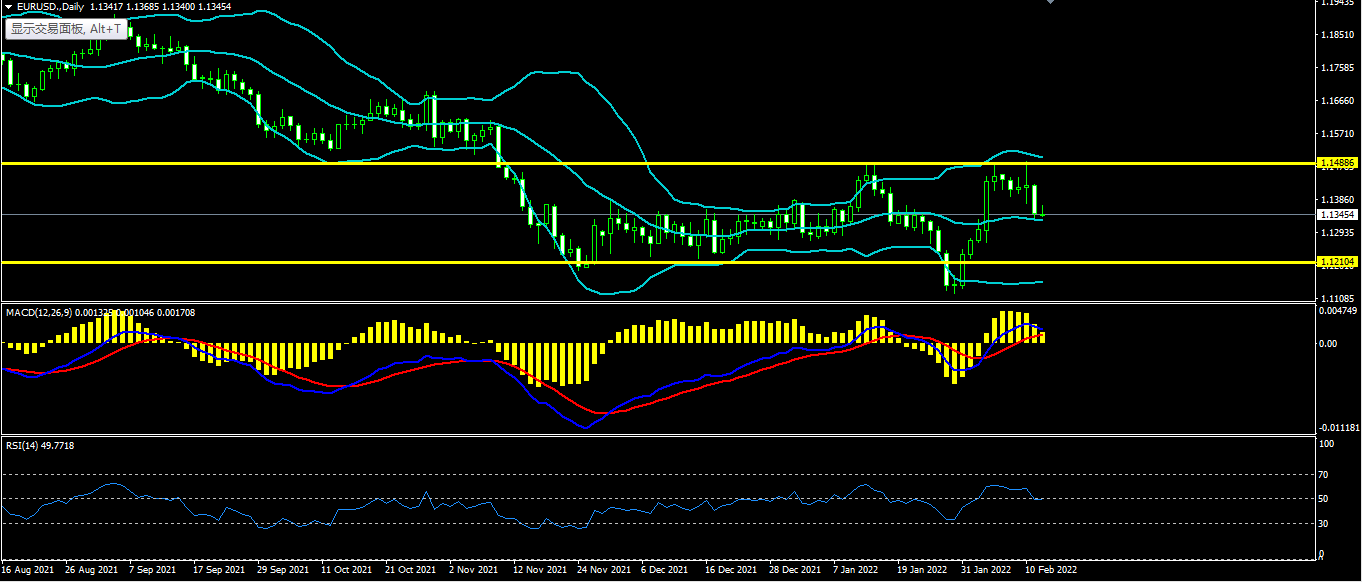 欧美上日开盘1.1420最高1.1494最低1.1374收盘1.1427