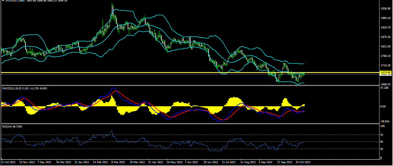 黄金上日开盘1664.3,最高1670.7,最低1654.7收盘1662.4