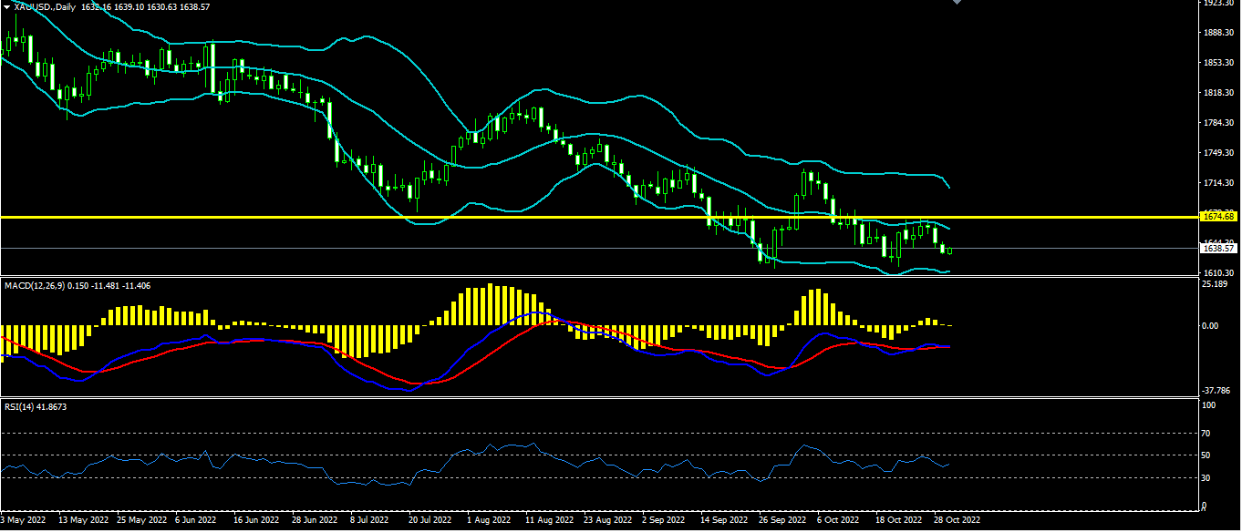 黄金上日开盘1661.6,最高1666.8,最低1638.1收盘1644.9