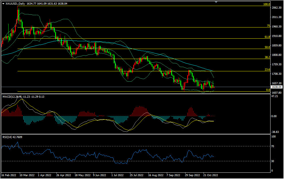 黄金上日开盘1646.6,最高1669.3,最低1634.5收盘1634.9