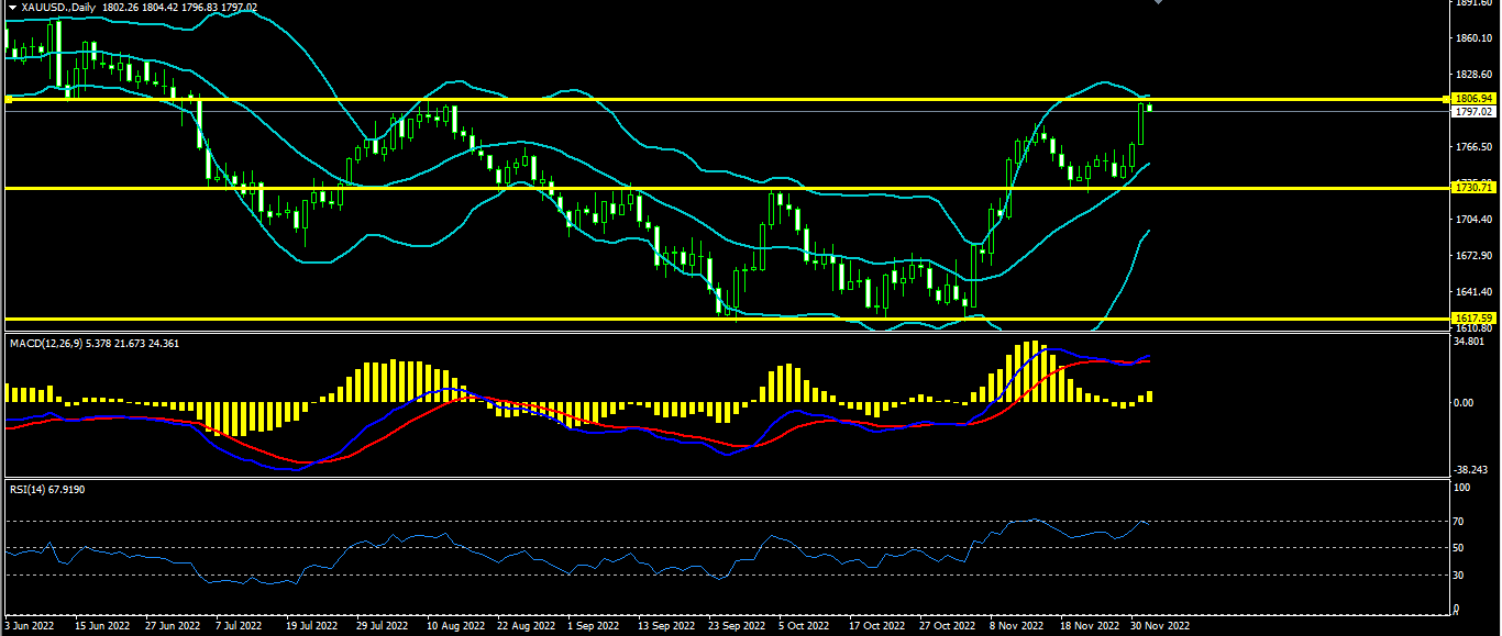 黄金上日开盘1768.3最高1804.2最低1767.9收盘1803.1