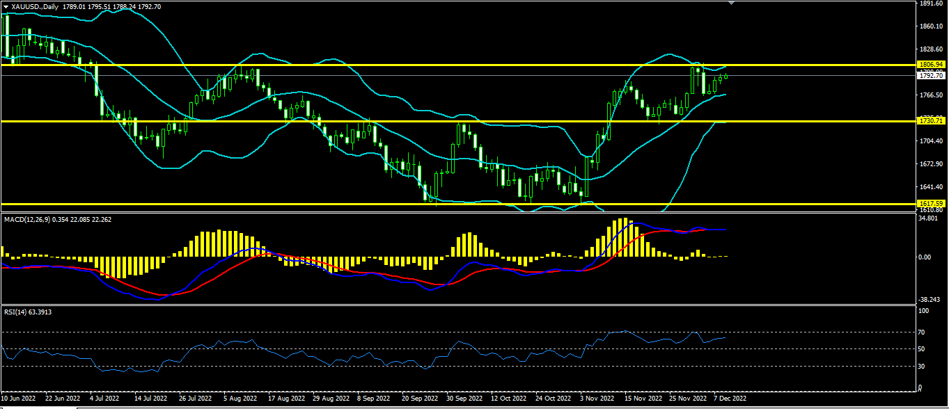 黄金上日开盘1786.7最高1795.0最低1781.2收盘1789.7