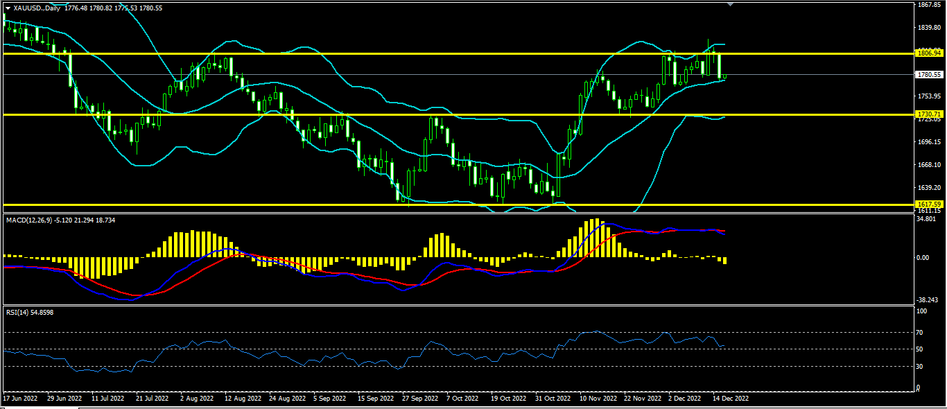 黄金上日开盘1809.4最高1814.3最低1795.1收盘1807.1。