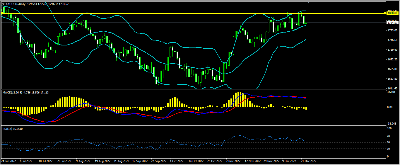 黄金上日开盘1813.0最高1820.5,最低1784.8收盘1792.5