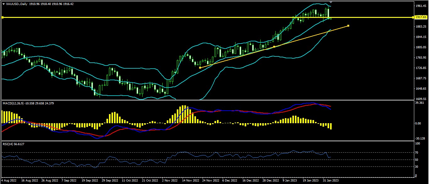 黄金上日开盘1950.3最高1959.3最低1911.0收盘1912.3
