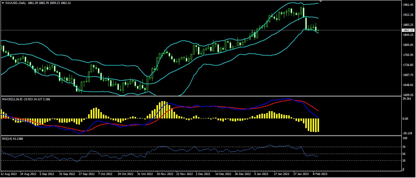 黄金上日开盘1875.4最高1890.5最低1858.9收盘1861.3